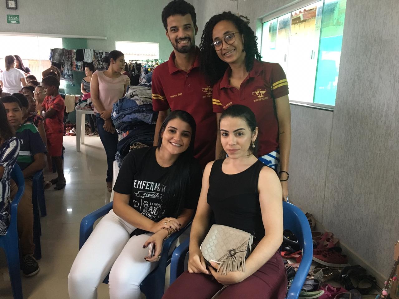 Na mesma data também foi realizada a distribuição de kits de Higiene bucal e o varal solidário. A atividade relacionada ao varal solidário esteve ligada aos presentes que participaram das palestras e do teatro como atividade educativa em saúde. Estes, logo após as atividades, poderiam dirigir-se ao varal e selecionar a partir de suas necessidades, roupas, acessórios e sapatos doados pela comunidade, pelos alunos, professores e colaboradores da FaSeM.