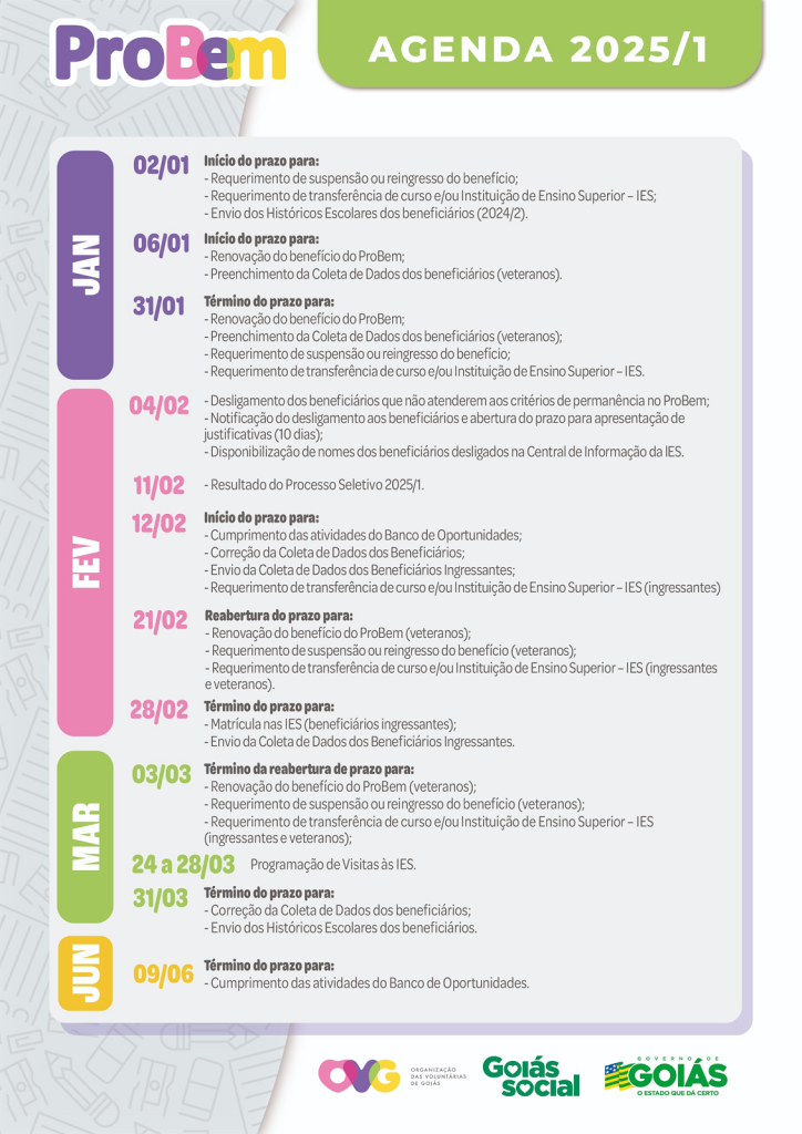 O Banco de oportunidades se encerra no dia 30 de junho. Fique de olho na agenda ProBem 2025/1 acessando o site da OVG e fique por dentro: OVG – Portal do Bolsista.
