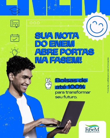 Na FaSeM, seu desempenho no ENEM pode garantir bolsas de até 100%. Chegou a hora de dar um passo decisivo rumo à carreira dos seus sonhos!