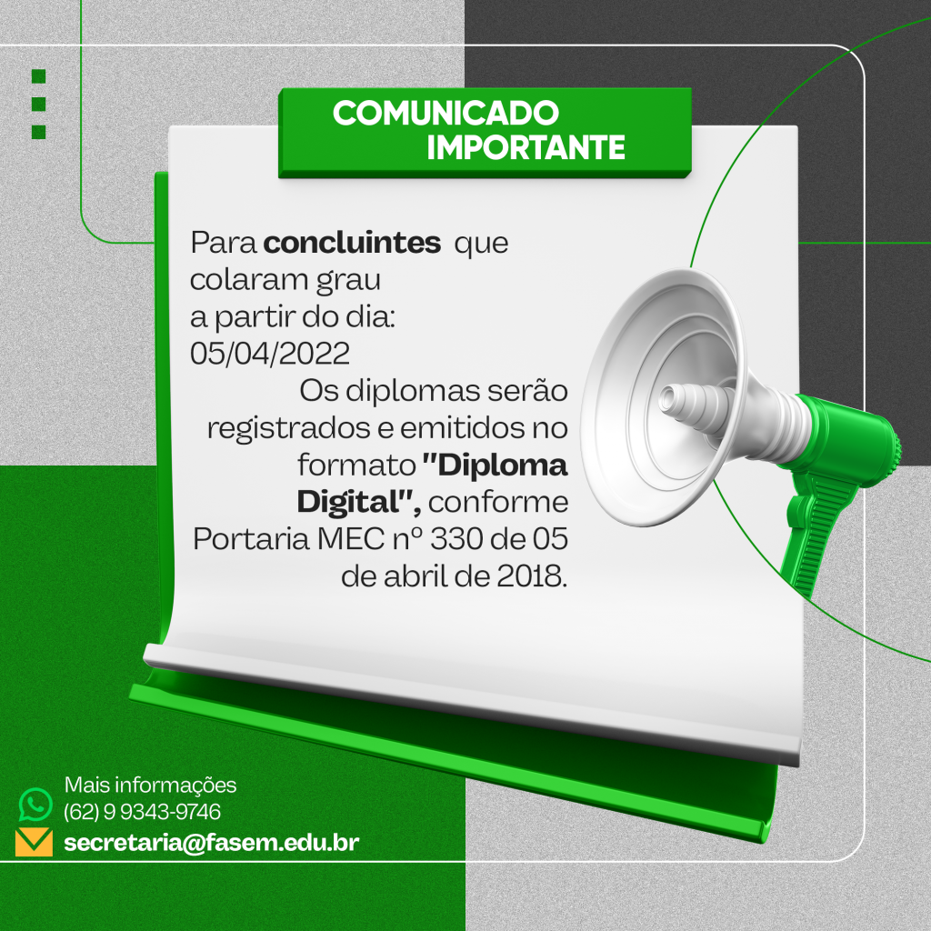 Os alunos da graduação que colaram grau a partir de 05 de abril de 2022, terão acesso aos seus diplomas no formato digital.
