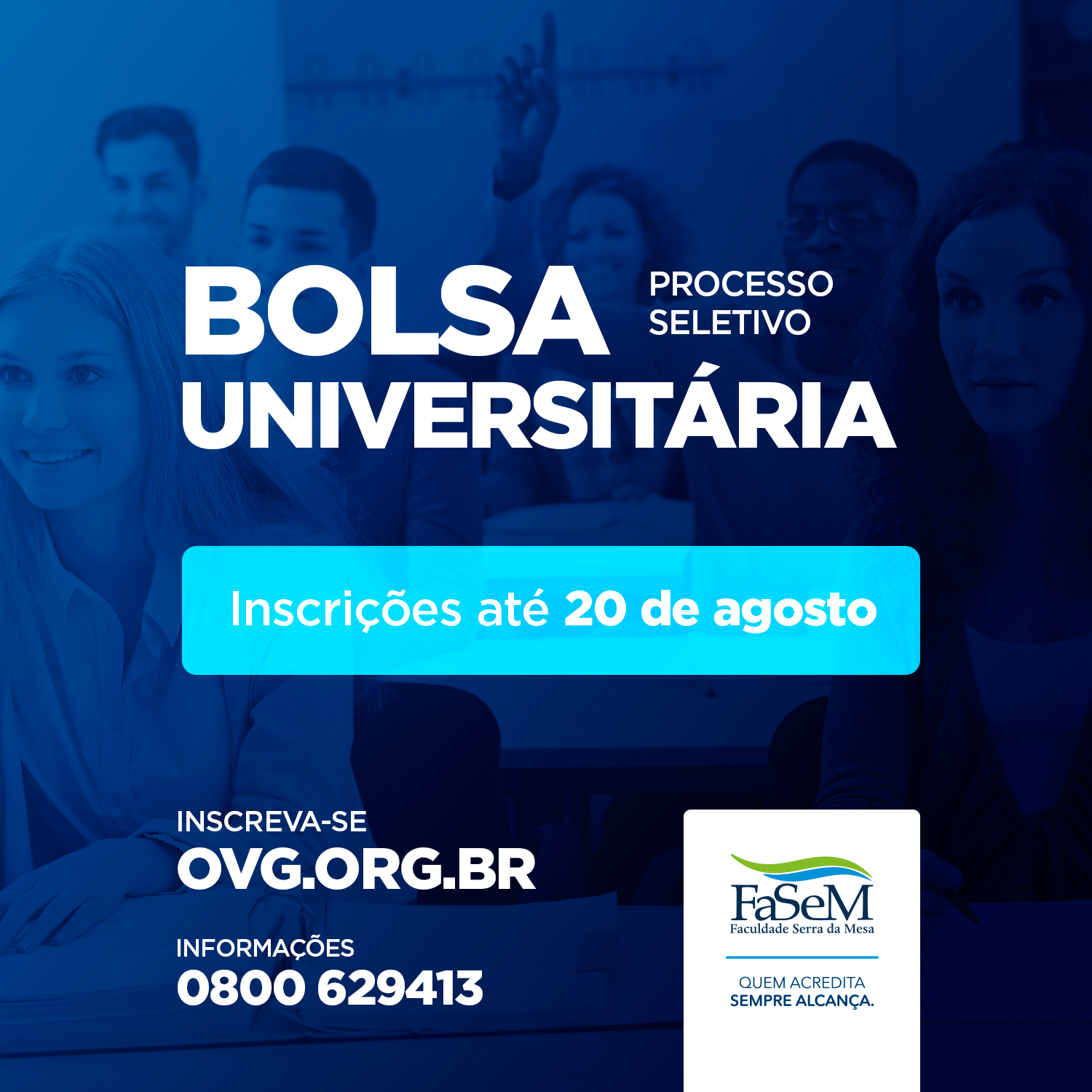 Foi aberta nesta última sexta-feira (11) as inscrições do processo seletivo para preenchimento de dez mil vagas no Programa Bolsa Universitária. De acordo com a Organização das Voluntárias de Goiás (OVG), podem concorrer ao benefício estudantes matriculados em instituições de ensino superior privadas ou em fundações municipais que cobram mensalidade, situadas em todo o Estado de Goiás e credenciadas do PBU.