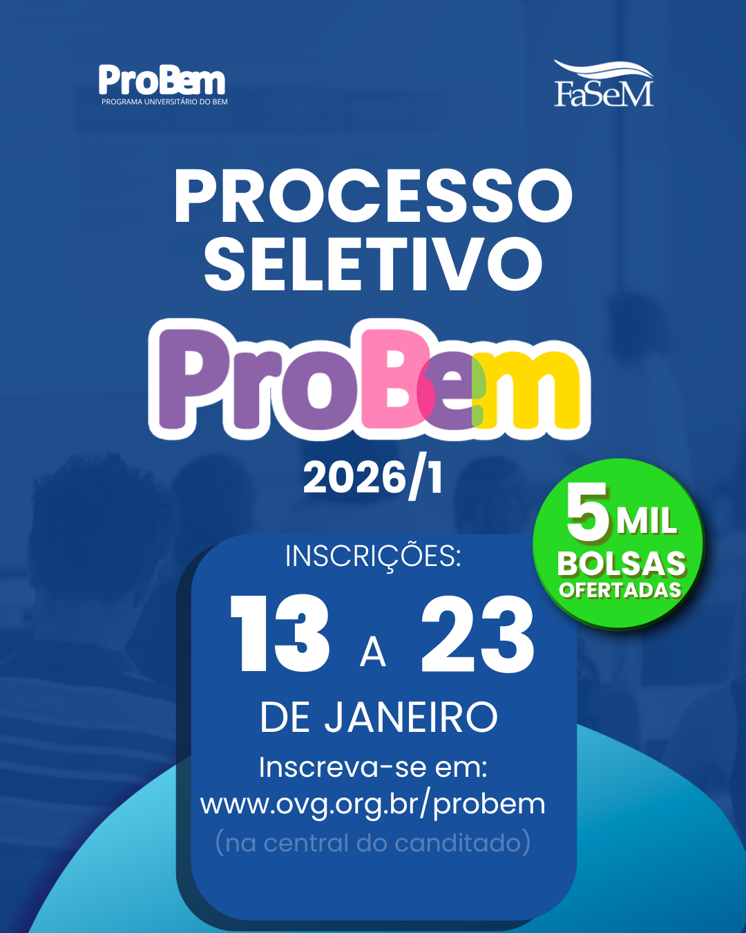 ProBem 2026/1: Bolsas de Estudo Para Ingressar na FaSeM