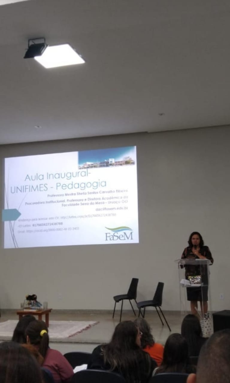 A Professora Mestra Sheila Santos Carvalho realizou uma Aula Magna no Centro Universitário de Mineiros-GO – UNIFIMES com o tema: Formação Acadêmica e Pesquisa.