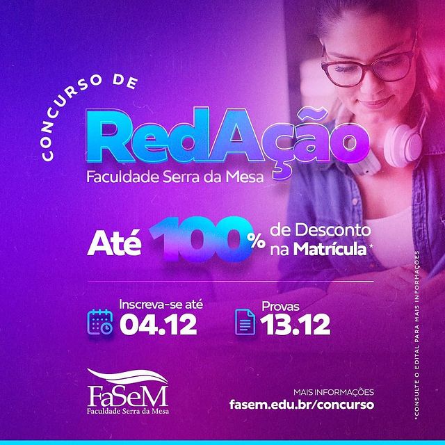 Confira o resultado do Concurso de Redação FaSeM / Elo 2020. Em conformidade com o edital nº 05/2020, que rege o presente Concurso de Redação, os candidatos com pontuação maior que 501 pontos terão direito a desconto na matrícula em qualquer um dos cursos de graduação da FaSeM ou cursos técnicos do Colégio Elo. Ainda em conformidade com o mesmo, os candidatos que obtiveram pontuação abaixo de 501 pontos poderão se matricular em qualquer um dos cursos de graduação da FaSeM ou cursos técnicos do Colégio Elo, mas sem direito a desconto. Os alunos que não obtiveram pontuação não terão acesso aos cursos de graduação da FaSeM ou cursos técnicos do Colégio Elo por meio do presente Concurso de Redação. Para maiores informações sobre a realização da matrícula, deve-se procurar a Secretaria Acadêmica da FaSeM a partir de 05/01/2021, de preferência pelo fone 3357-7272