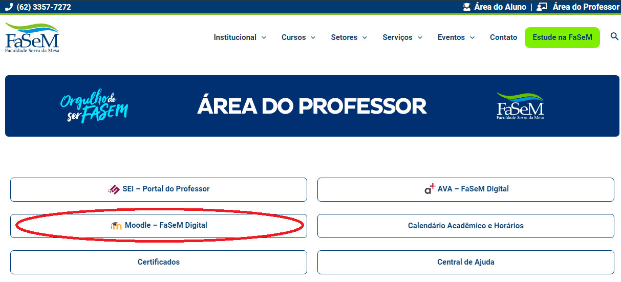 05 – Na mesma tela, você tem acesso ao “Moodle UniSeM/FaSeM Digital”.