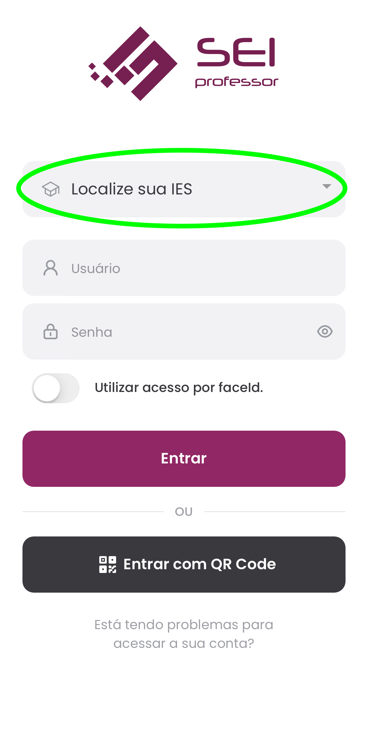 10 – Após a instalação, digite FASEM no campo “Sigla da sua instituição de ensino”, clique em “Prosseguir para Login” e informe suas credenciais.